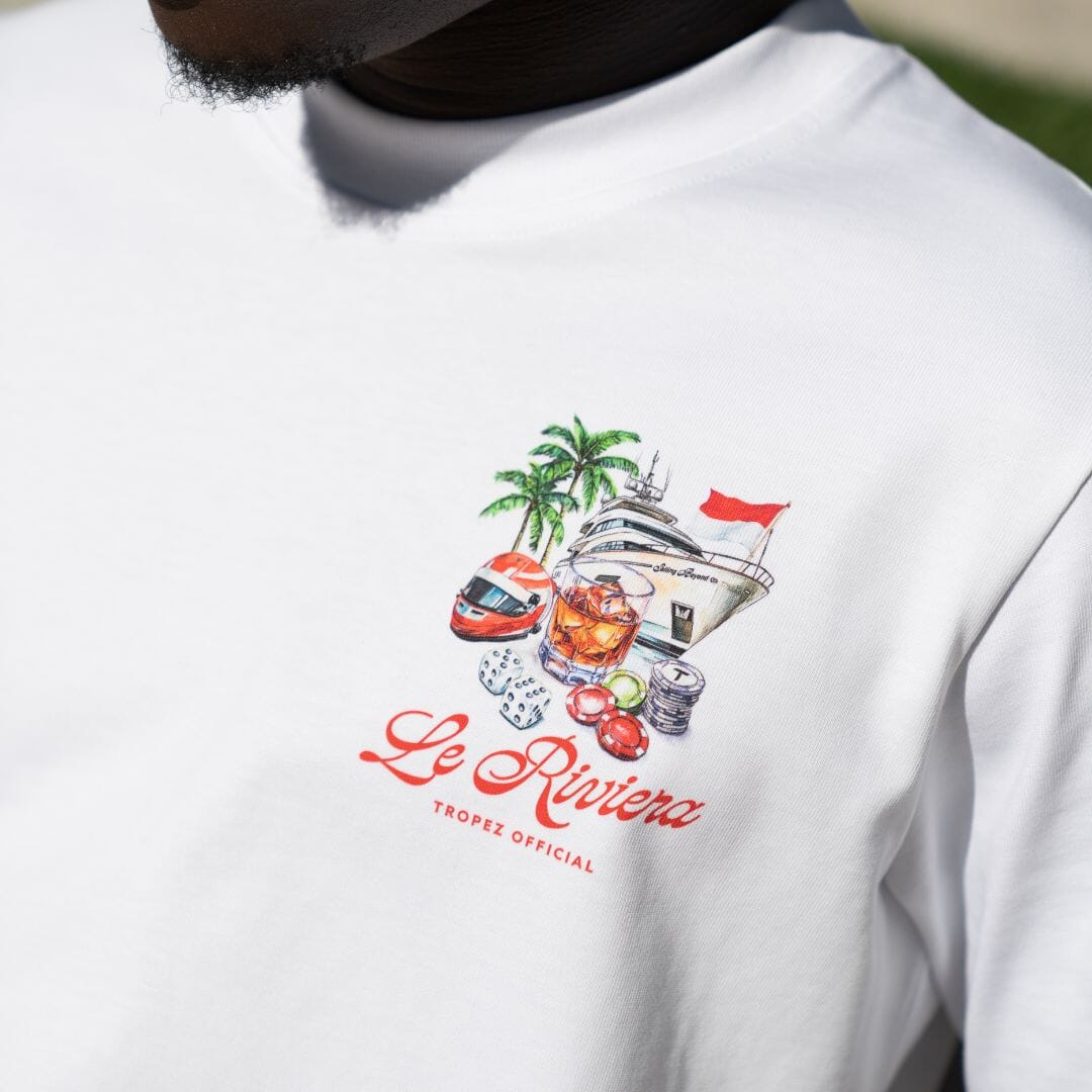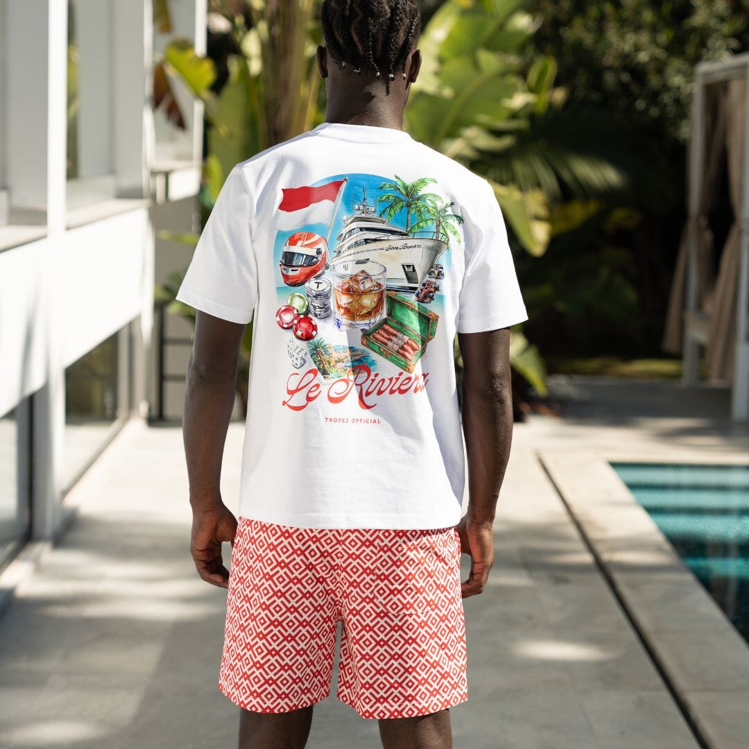 Crafted from organic cotton, the Riviera Tee epitomises Tropez’s European summer-inspired aesthetic. Featuring branded artwork inspired by the French Riviera, it is presented in white and tailored for a relaxed fit.