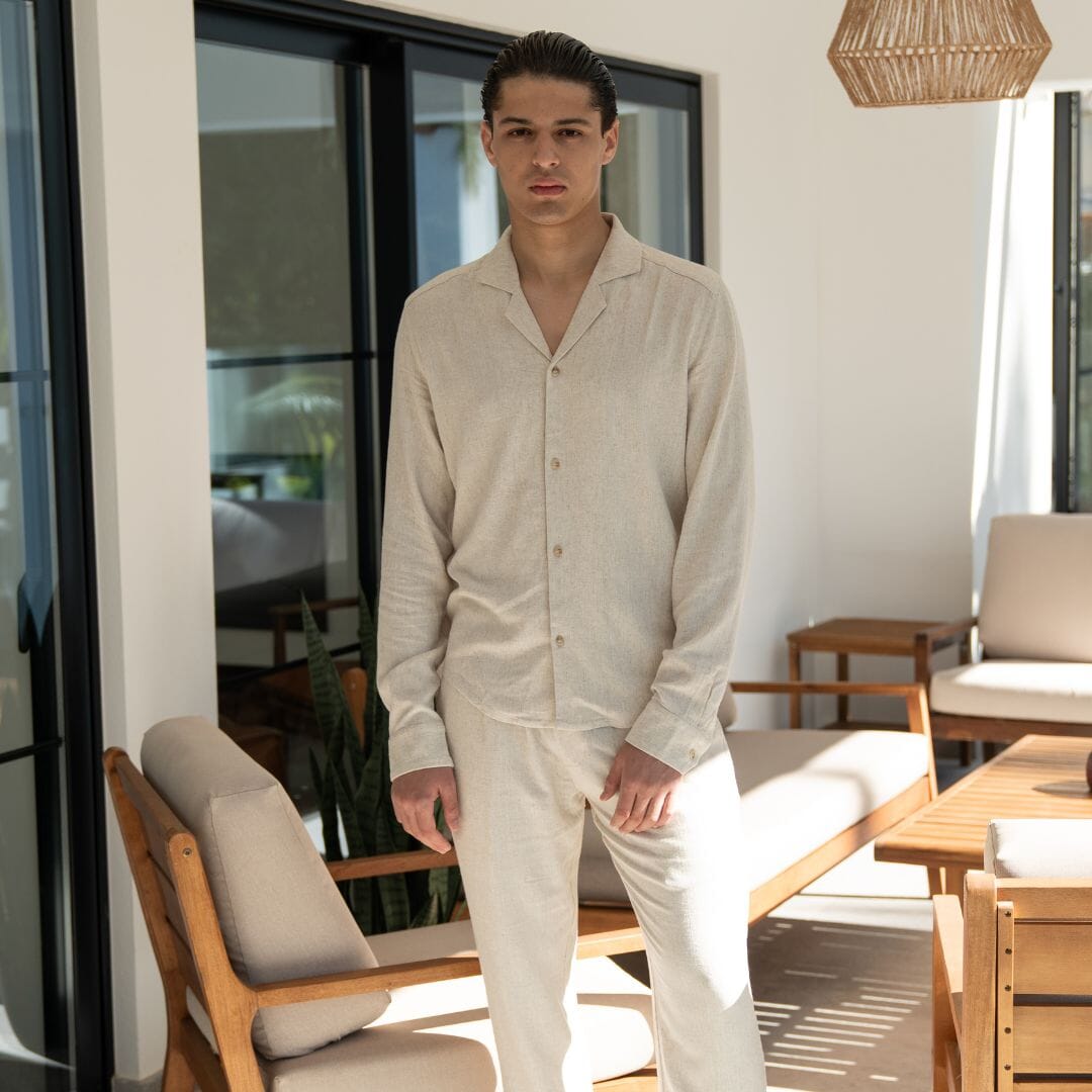 Our Oatmeal Linen Shirt is the perfect fit for your summer. Made from a linen mix, we have designed this shirt to provide comfort aswell as style across the summer day into the evening. This shirt is perfect to be paired with a pair of matching shorts or trousers.