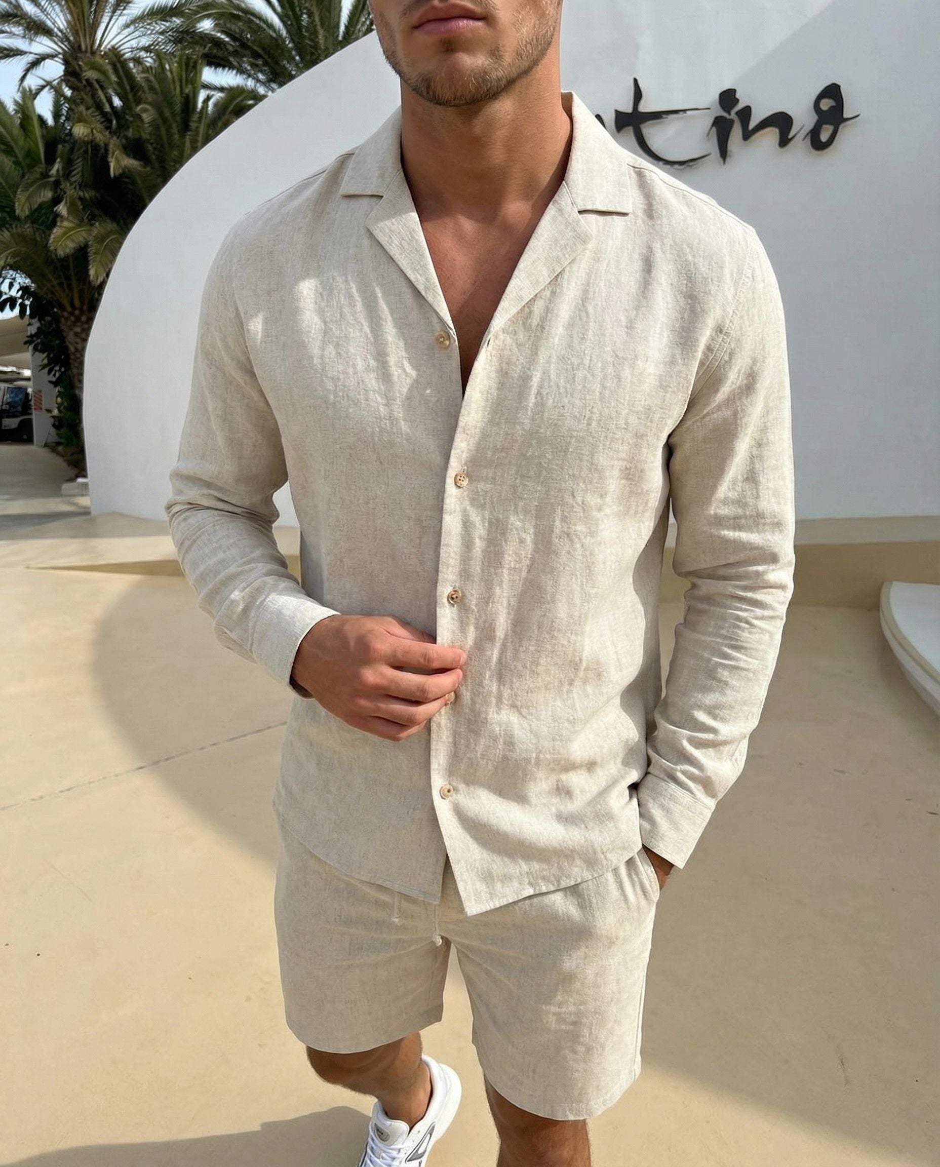 Our Oatmeal Linen Shirt is the perfect fit for your summer. Made from a linen mix, we have designed this shirt to provide comfort aswell as style across the summer day into the evening. This shirt is perfect to be paired with a pair of matching shorts or trousers.