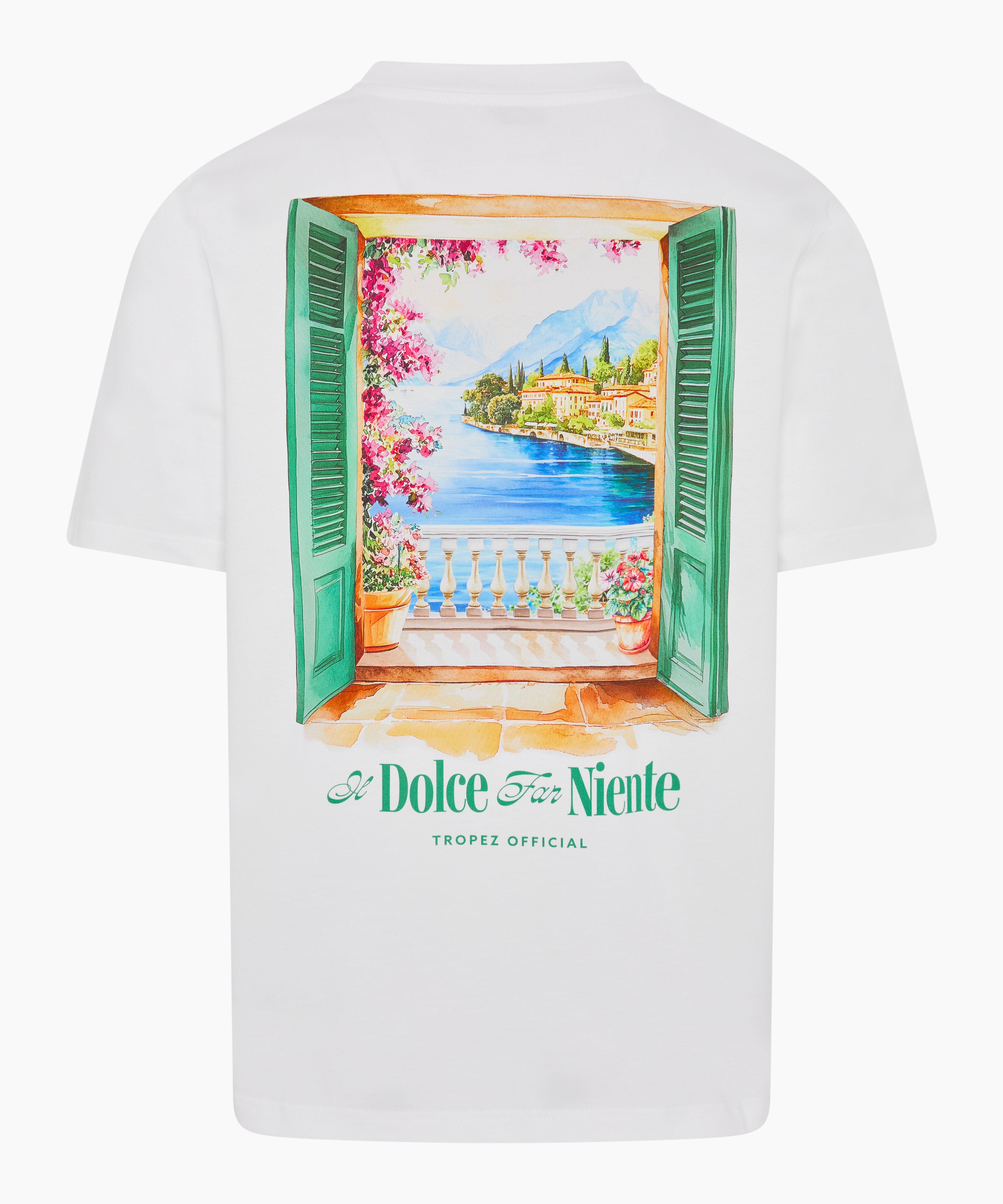 Crafted from organic cotton, the Como Tee epitomises Tropez’s European summer-inspired aesthetic. Featuring branded artwork inspired by the beautiful Lago Di Como it is presented in white and tailored for a relaxed fit.