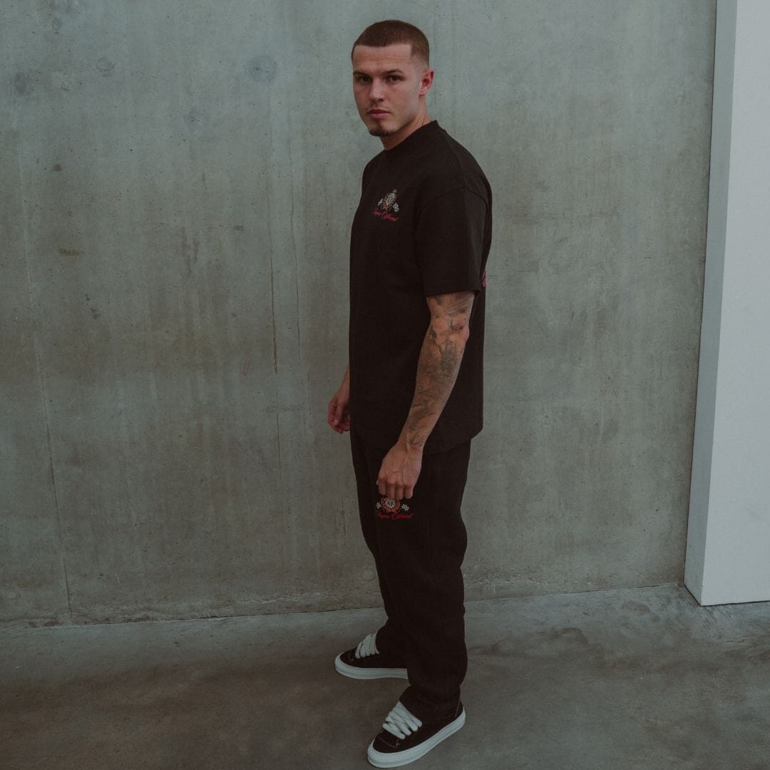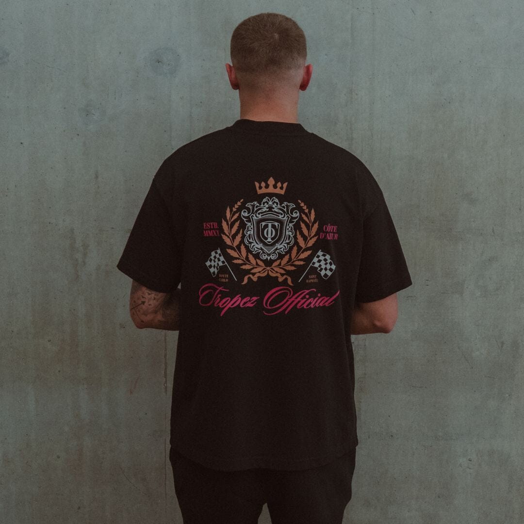 A wardrobe essential elevated with detail. The Crest Tee is crafted in Portugal from luxury heavyweight cotton and cut to an oversized boxed fit for a structured yet relaxed silhouette. Featuring a printed crest on the chest and a bold back graphic, it combines comfort with statement design.
