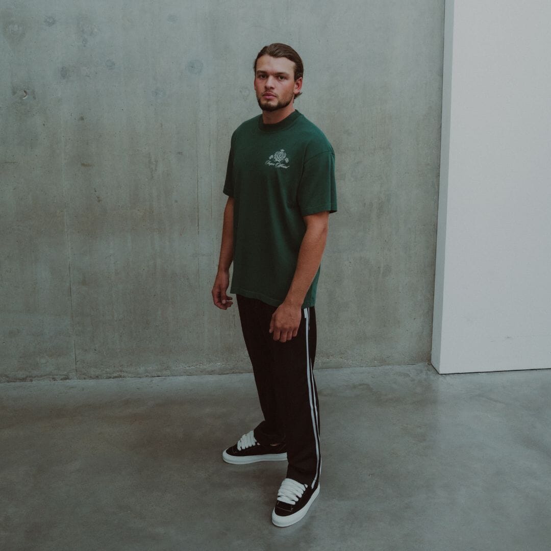 A wardrobe essential elevated with detail. The Crest Tee is crafted in Portugal from luxury heavyweight cotton and cut to an oversized boxed fit for a structured yet relaxed silhouette. Featuring a printed crest on the chest and a bold back graphic, it combines comfort with statement design.
